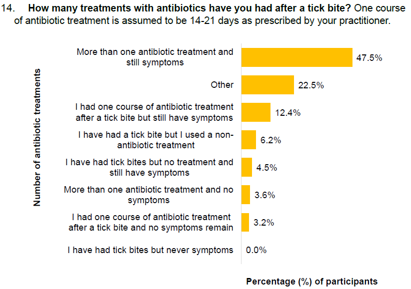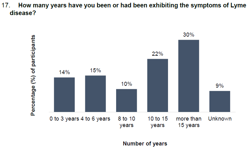 - Over 80% of respondents reported having their capacity to work impaired as a result of tick-borne infection