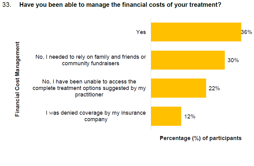 - Over 60% of respondents were not able to independently manage the cost of treatment, as this illness is not covered by the Canadian Healthcare System